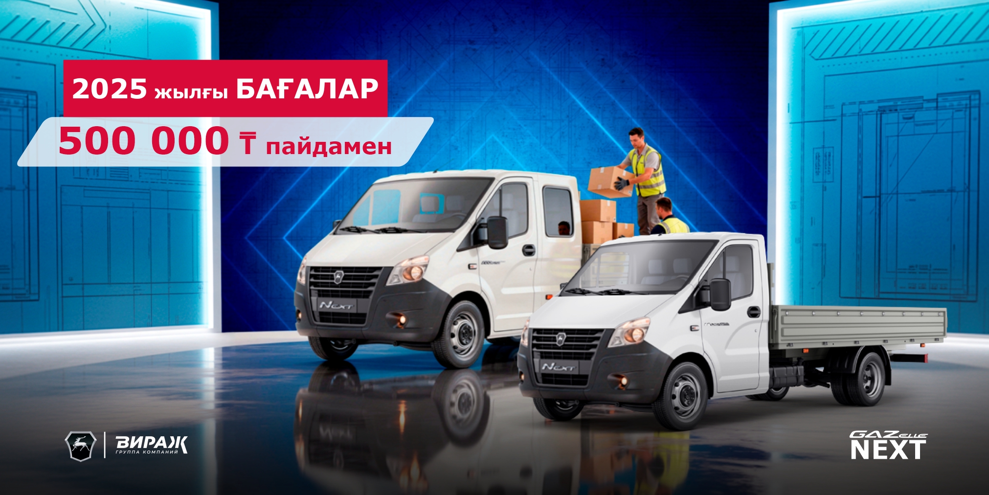 GAZelle NEXT автокөлігін 2025 жылғы бағамен сатып алуға үлгеріңіз және қосымша 500 000 теңге жеңілдік алыңыз!